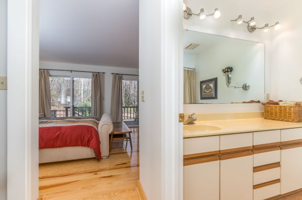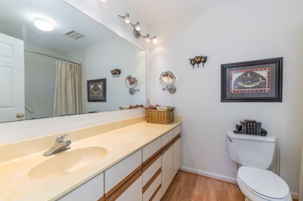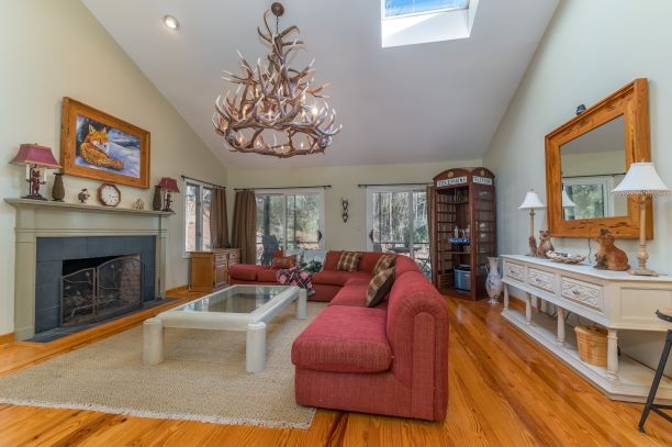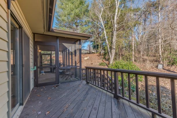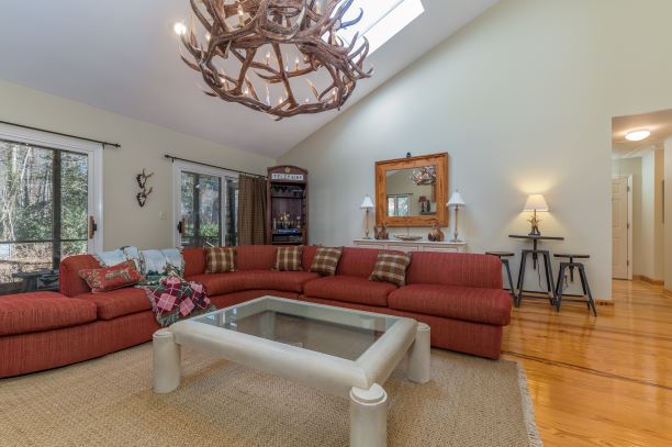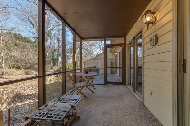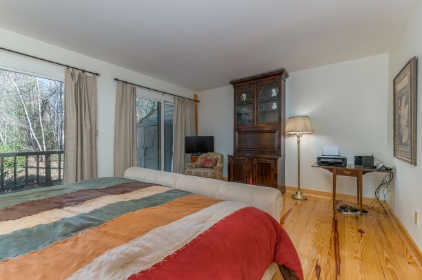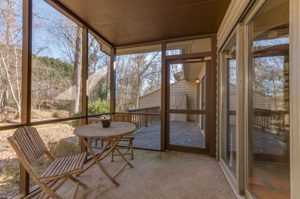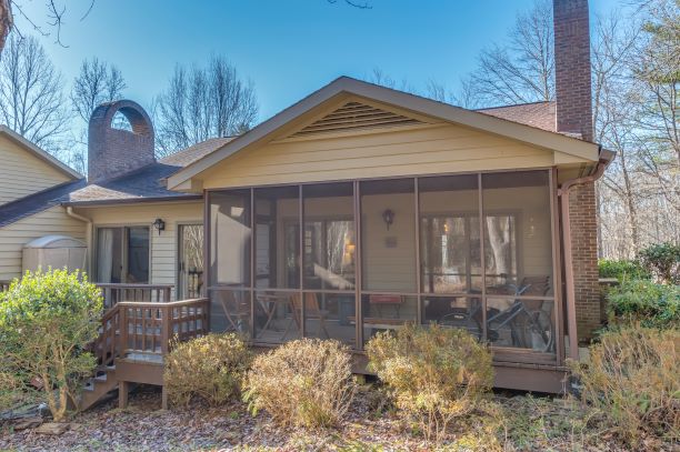 | Step into this light and bright end unit in the desirable Hunting County Trails! The two bedroom and 2 bathroom home features soaring ceilings in the foyer, kitchen and great room. A wood burning fireplace accentuates the main gathering space which leads to a spacious screened porch via two sliding glass doors. The master also boasts two sliding glass doors that open to a private deck. Add your special touches to make it perfect for a little getaway or even better – full-time living! Location cannot be matched!