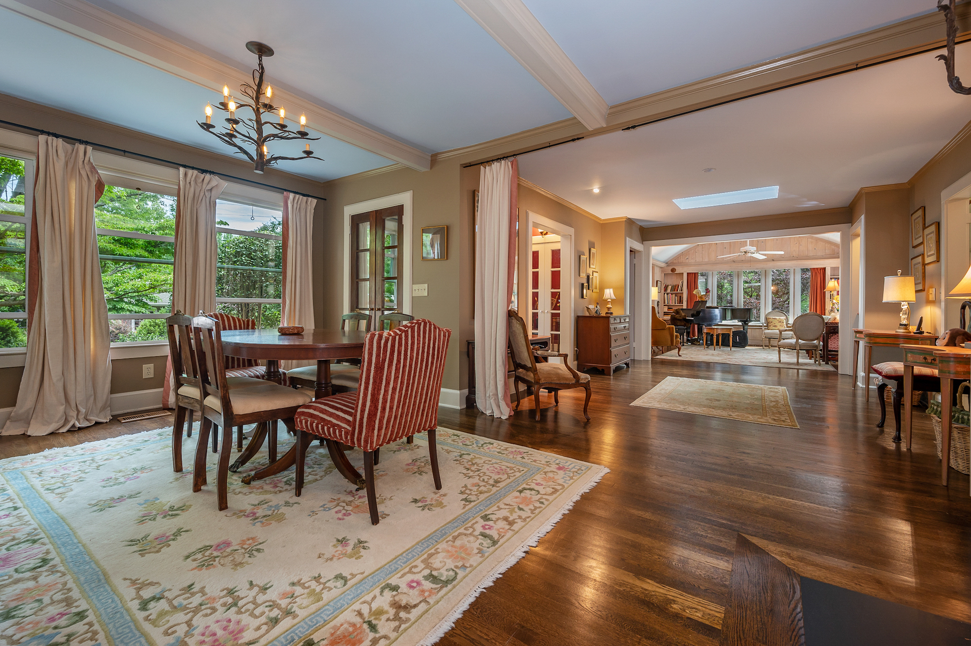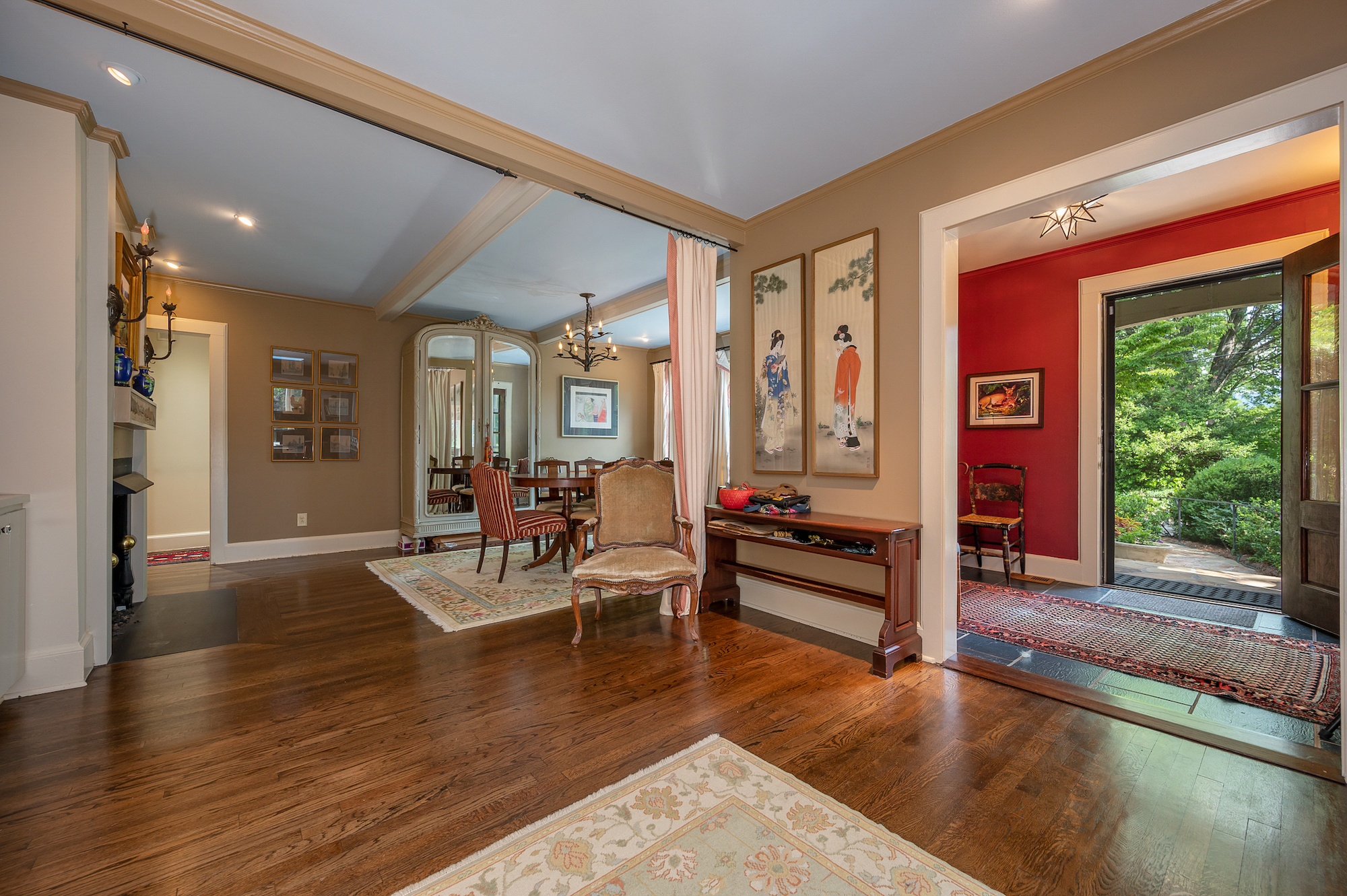 Welcome to “Dove Cottage”! A Tryon beauty made for entertaining. From the grand entrance to the expansive kitchen, beautiful features that captivate your senses and beckon you to find the perfect spot to make your own. The great room and screened porch additions are out of this world and just wrap you up in their magic. When you walk along the stone pathways through the incredibly manicured and loved grounds, you will instantly feel at home. Perfect in-town location, but with 1.34 acres of ideal privacy. The charm and character will take your breath away – built-ins, mirrored and glass doors, beams, window seats and tucked away spaces… Let’s not overlook the fabulous detached garage and ample storage in the unfinished portion of the basement. Once featured in Carolina Home and Garden Magazine, this is one of the absolute gems of the town!